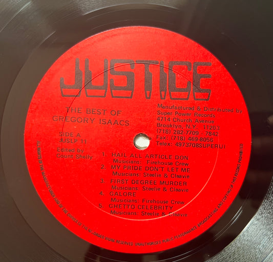 Gregory Isaacs – The Best of Gregory LP, mint reggae vinyl, Justice red label