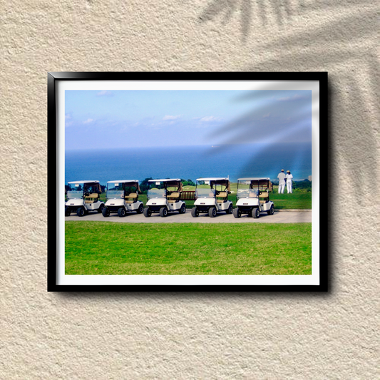 Jamaica Golf Course - A Row of Gulf Carts Overlooking Beach