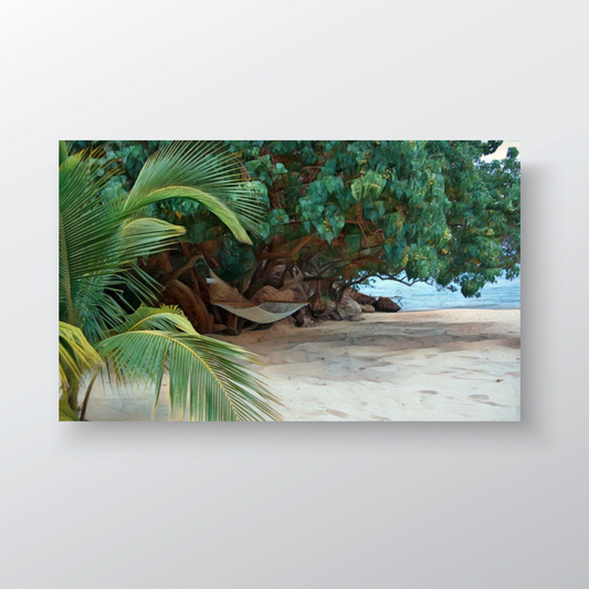 Pure Relaxation: Empty Hammock on Tranquil Jamaican Beach