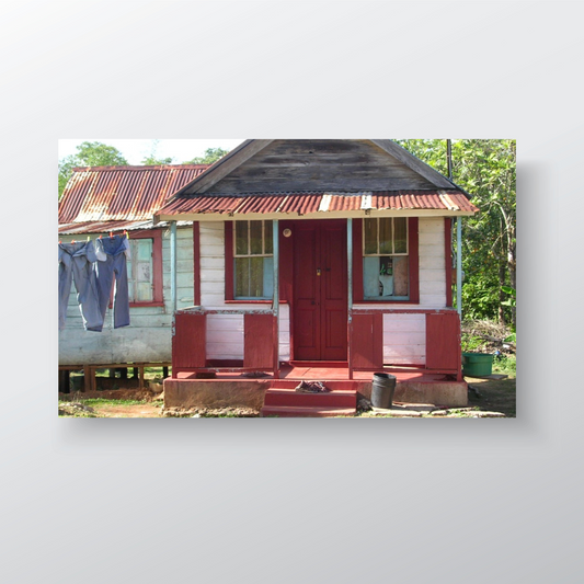 Rustic Framed Yellow House with Traditional Zinc Roof - Rural Jamaica
