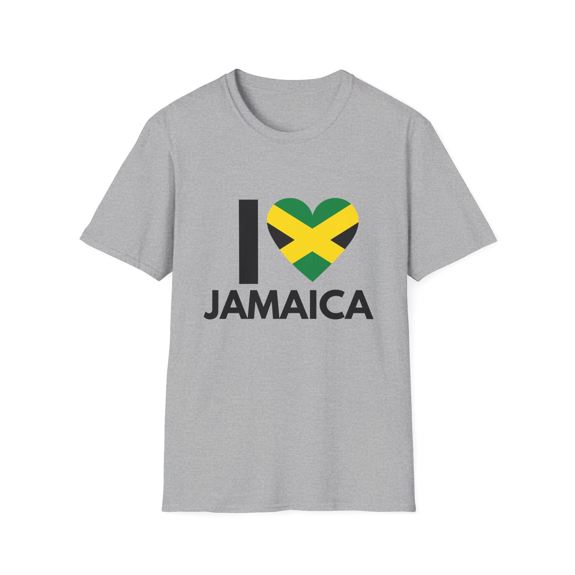 Celebrate your love for Jamaica in style with this soft and comfortable unisex t-shirt! Featuring the phrase "I Love Jamaica," where the word love is creatively represented by a heart filled with the Jamaican flag, this shirt is perfect for showing off your island pride.