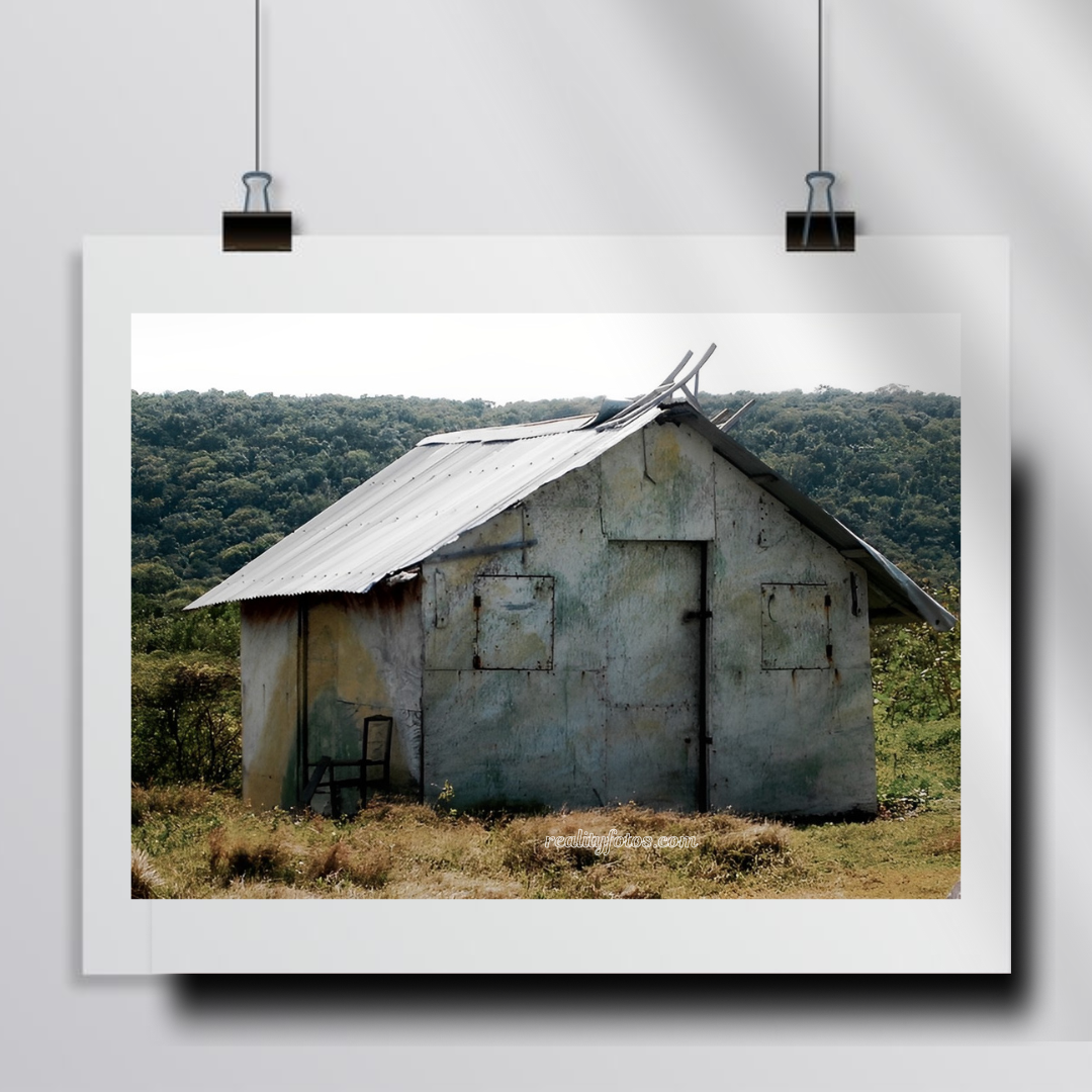 A rustic one-room house with a zinc roof stands peacefully in the heart of the countryside, surrounded by the natural beauty of rural Jamaica. This humble dwelling reflects the simplicity and resilience of island life.