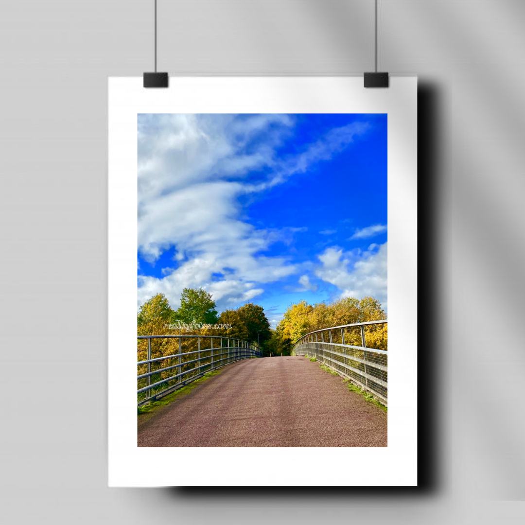 This striking image captures the soaring peak of a bridge against a backdrop of a clear, vibrant blue sky. The clean lines and architectural beauty of the bridge create a sense of movement and aspiration, as if reaching towards the heavens. A perfect blend of man-made structure and nature, this scene evokes a feeling of freedom and endless possibilities.